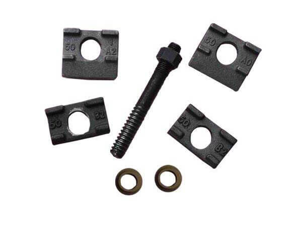3、鐵道部3150專線系列配件(各種型號道夾板、墊板、扣件、螺栓、橡膠墊、軌矩拉桿、維修工具、防爬器)。
